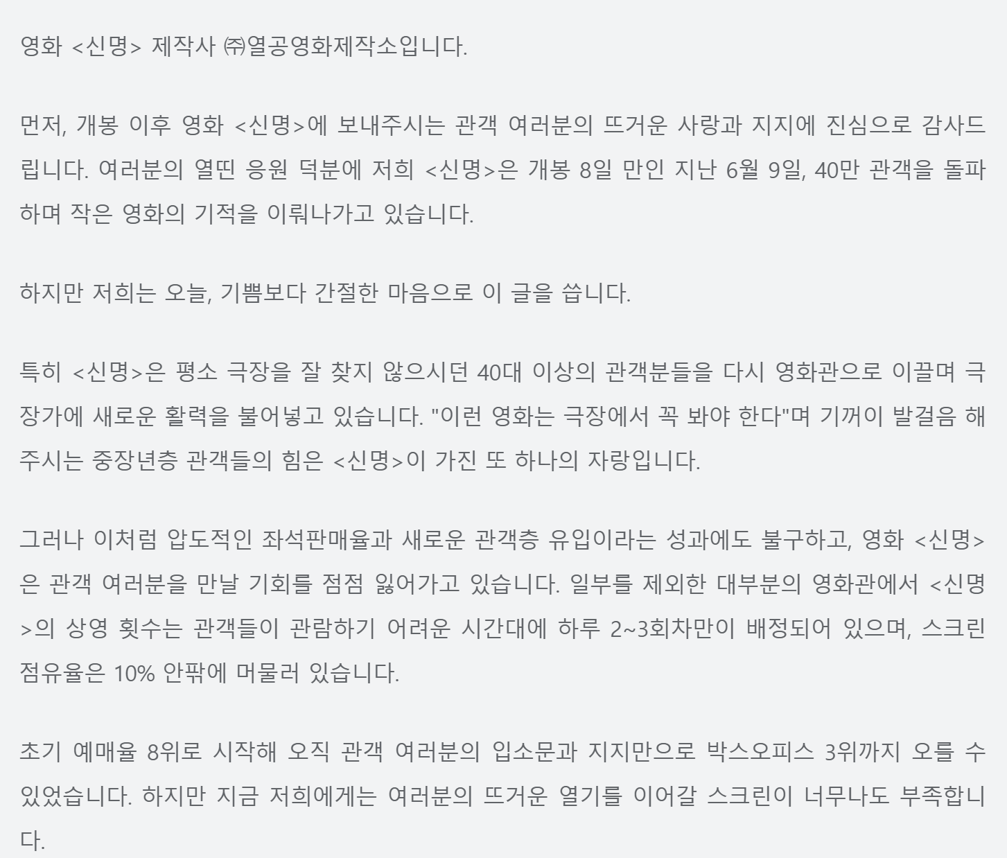 영화의 완성도보다 ‘지금 이 영화를 볼 수 있다는 것 자체’가 중요한 관객들이 많습니다.